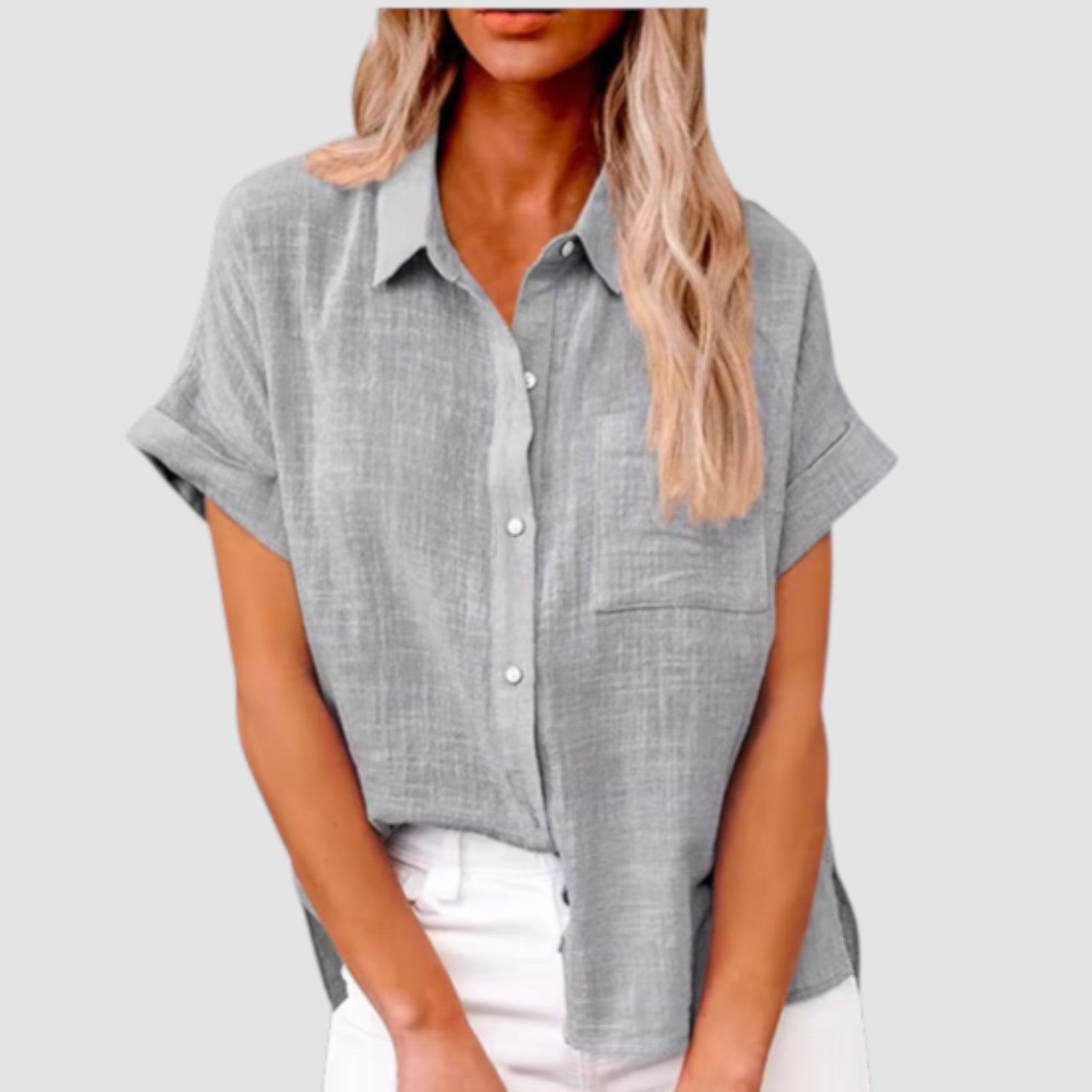 ✔ Ljusbeige viskosblandning som känns mjuk mot huden och faller fint ✔ Klassisk skjortkrage och knappslå för en tidlös siluett ✔ Kort ärm och bröstficka som tillför diskret karaktär ✔ Enkel att matcha med ljusa linnebyxor, jeans eller kjol